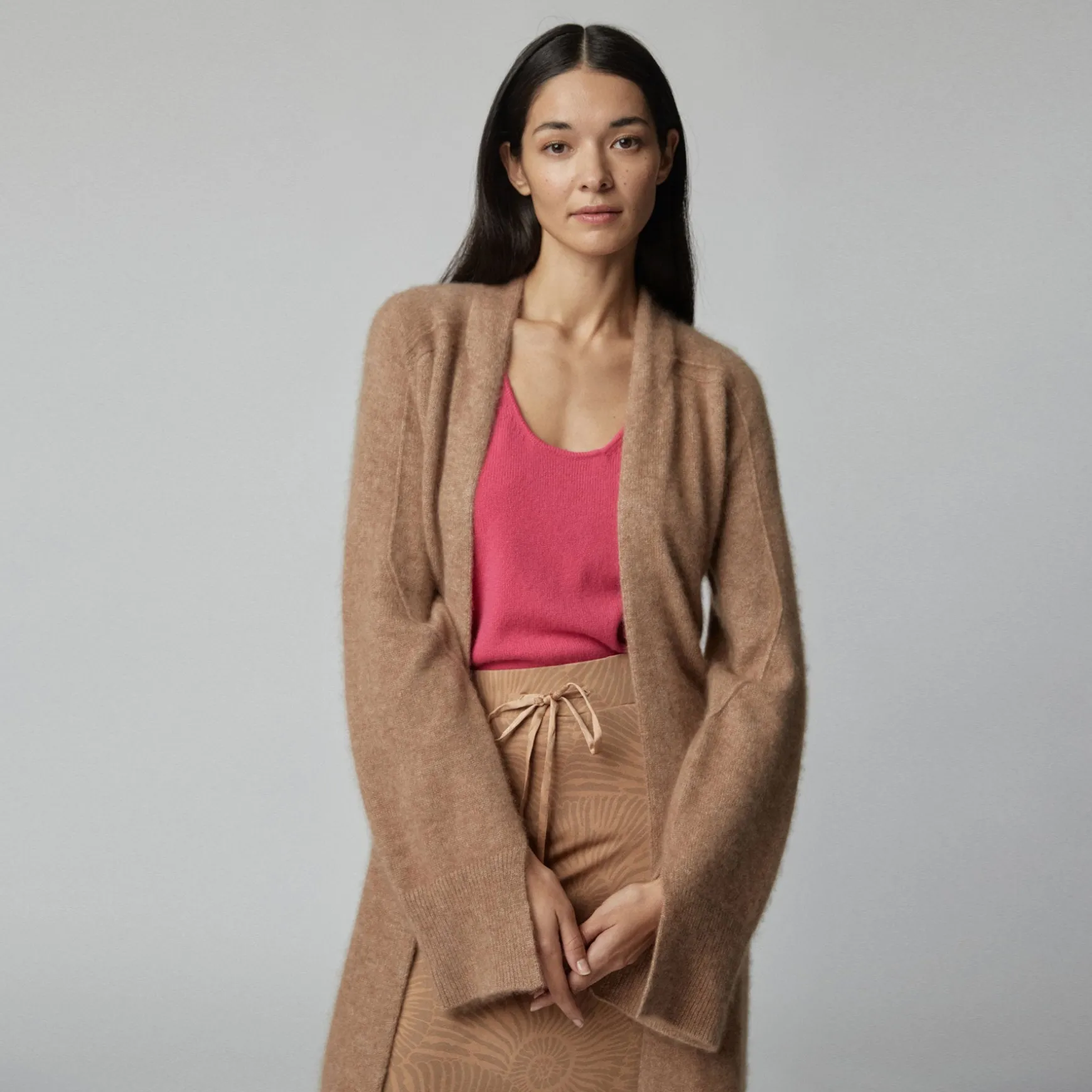 Der Rock ist ein Artikel unserer JERSEY Reihe, die aus 100% Seide sehr fein und engmaschig gestrickt werden. Das Material trägt sich sehr angenehm auf der Haut und ist ideal für warme Tage.