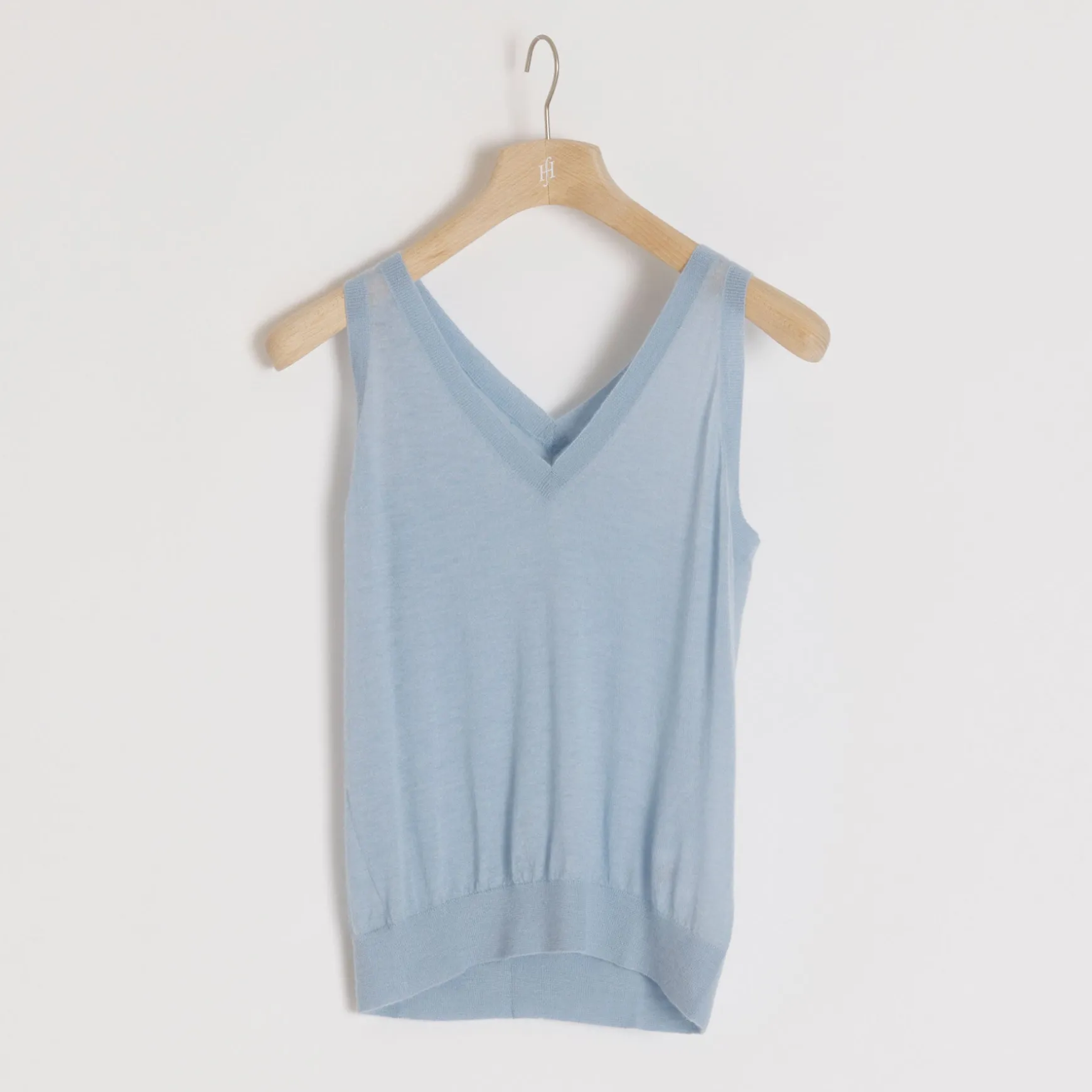 Schlichtes Top mit v-neck auf der Vorder- und Rückseite.