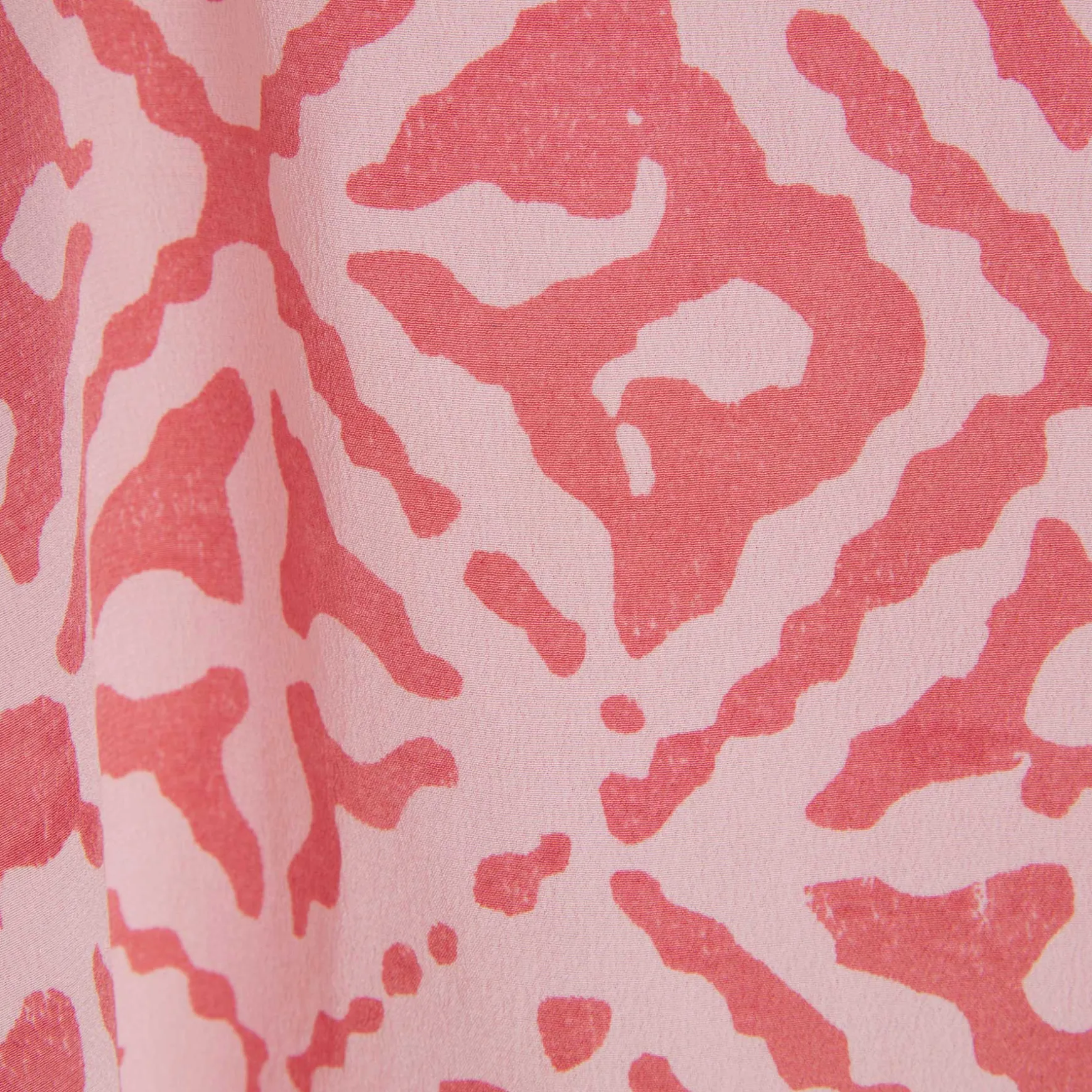 Das Material wird in der Manufaktur in Nepal per Hand aus Seidensatin gewebt. Anschließend wird der Print im Handsiebdruckverfahren auf der Seide platziert.
