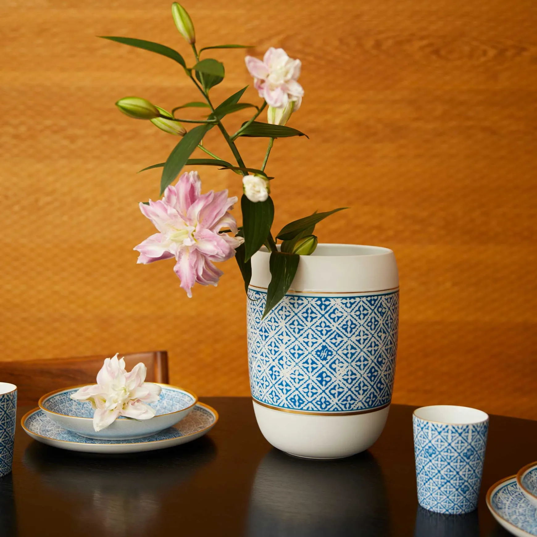 Ob mit Blumen oder ohne. Diese Vase ist ein Schmuckstück, welches die Schönheit der Natur von Pflanzen emporhebt oder als Solitär Wärme und Eleganz an die Umgebung abstrahlt. Von den erfahrenen Meistern der Manufaktur Reichenbach mit handgezogenen goldenen Linien veredelt, ist die sinnliche, ausladende Form dieser Vase durch die Kombination von Biskuitporzellan und lackiertem Scherben auch haptisch ein Genuss.
